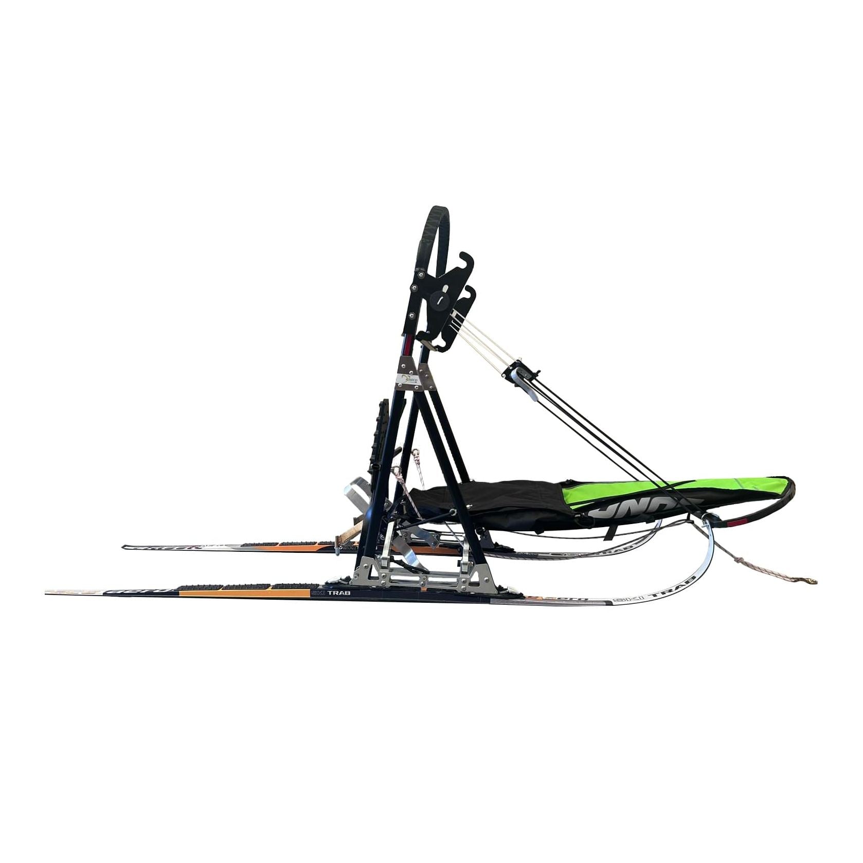 Sprintschlitten für ein Gespann aus zwei Hunden in der offenen Klasse. Der Schlitten wird als komplettes Set mit Aero-Ultra-Leichtkufen, Schlittenbeutel, Eisbremse und Bremsmatte verkauft.