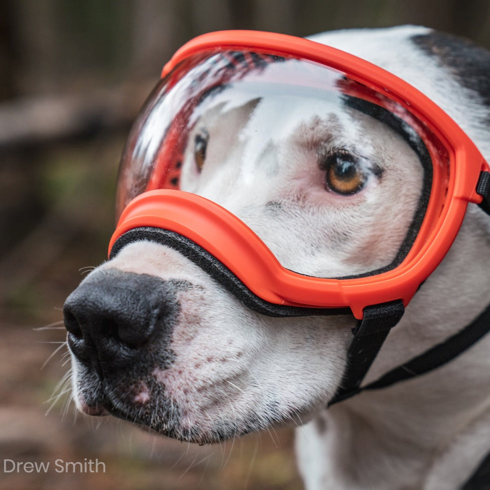 Rex Specs Schutzbrillen sind so konzipiert, dass sie auch bei hoher Beanspruchung gut am Kopf sitzen, ohne das Sichtfeld des Hundes einzuschränken.