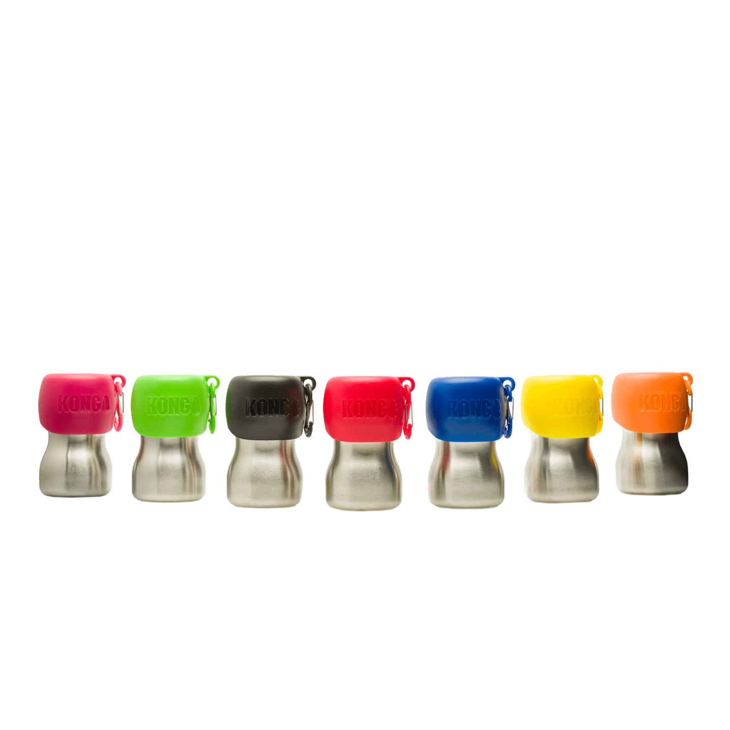 The Kong H2O Stainless Steel Water Bottle 280ml combines a water bottle and bowl, making it easy to take along and making it simpler to offer water to your dog while outdoors or traveling!