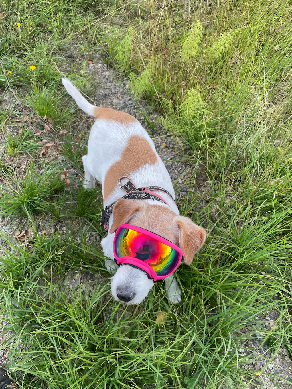 Ostimme RexSpecsit Taolle, jolla on pitkälle edennyt PRA eikä se näe enää. Koska koira kulkee puskien läpi ja ojan pohjia ja pientareita myöten, sillä oli toistuvasti ärsytyksestä johtuvia silmätulehduksia. Specsit suojaavat sen silmiä loistavasti ulkoillessamme ja viimeisin silmätulehduskin on parantunut nyt nopeammin kuin aiemmin. Silmiä hoitava eläinlääkärikin oli tyytyväinen hankintaamme. Koira oli helppo totuttaa näihin, koska sillä on ollut vedonestopanta ja kuonon ympäri menevä kiinnitys oli siis tuttu juttu. Säädöt oli todella helppo tehdä. Linssin vaihdon teko on vielä mysteeri, kun paketissa ei tullut siihen ohjetta mukana, mutta netti varmaankin siinä auttaa.